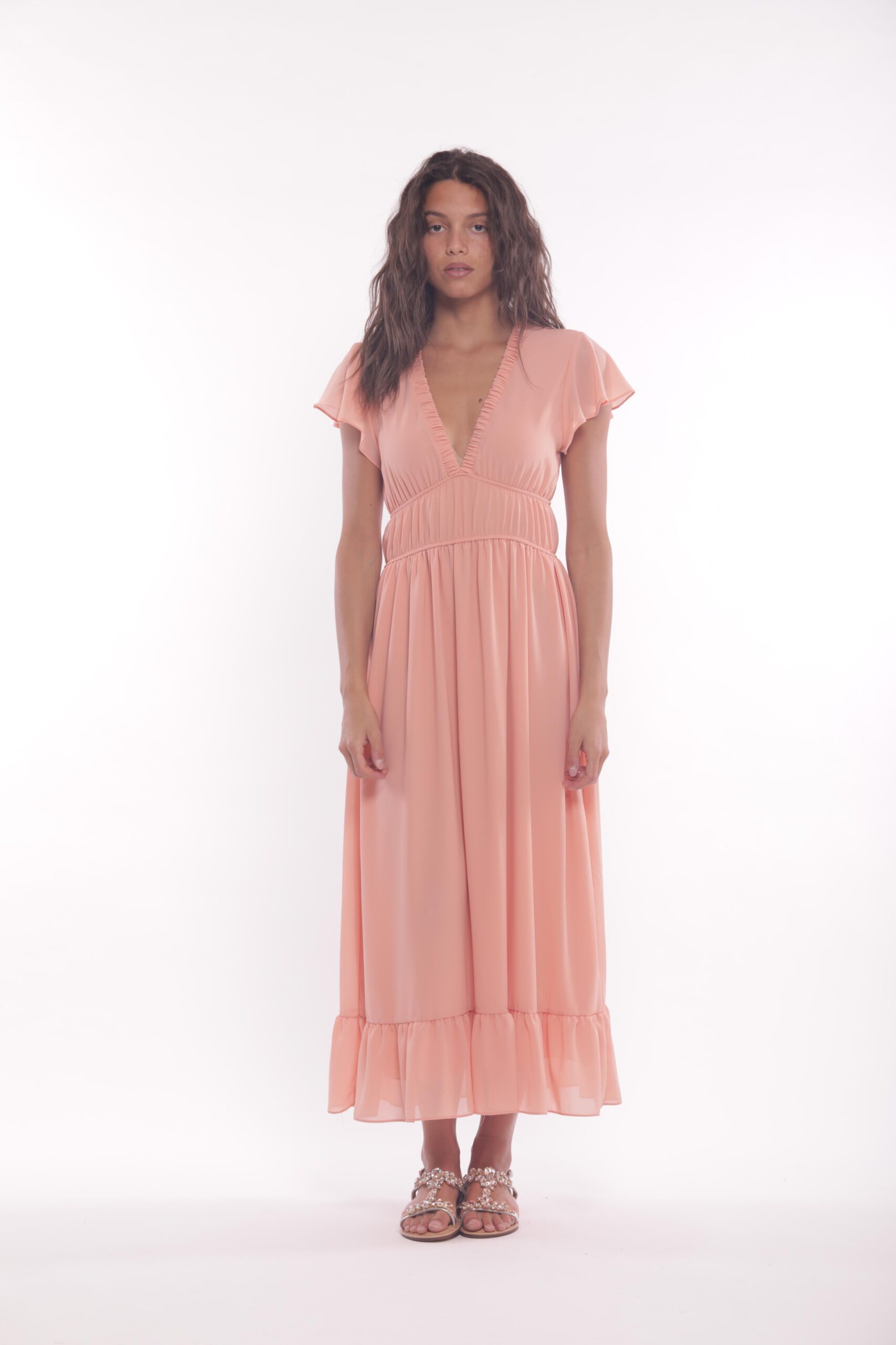 Abito Lungo in Georgette Con MVoulant Pesca
