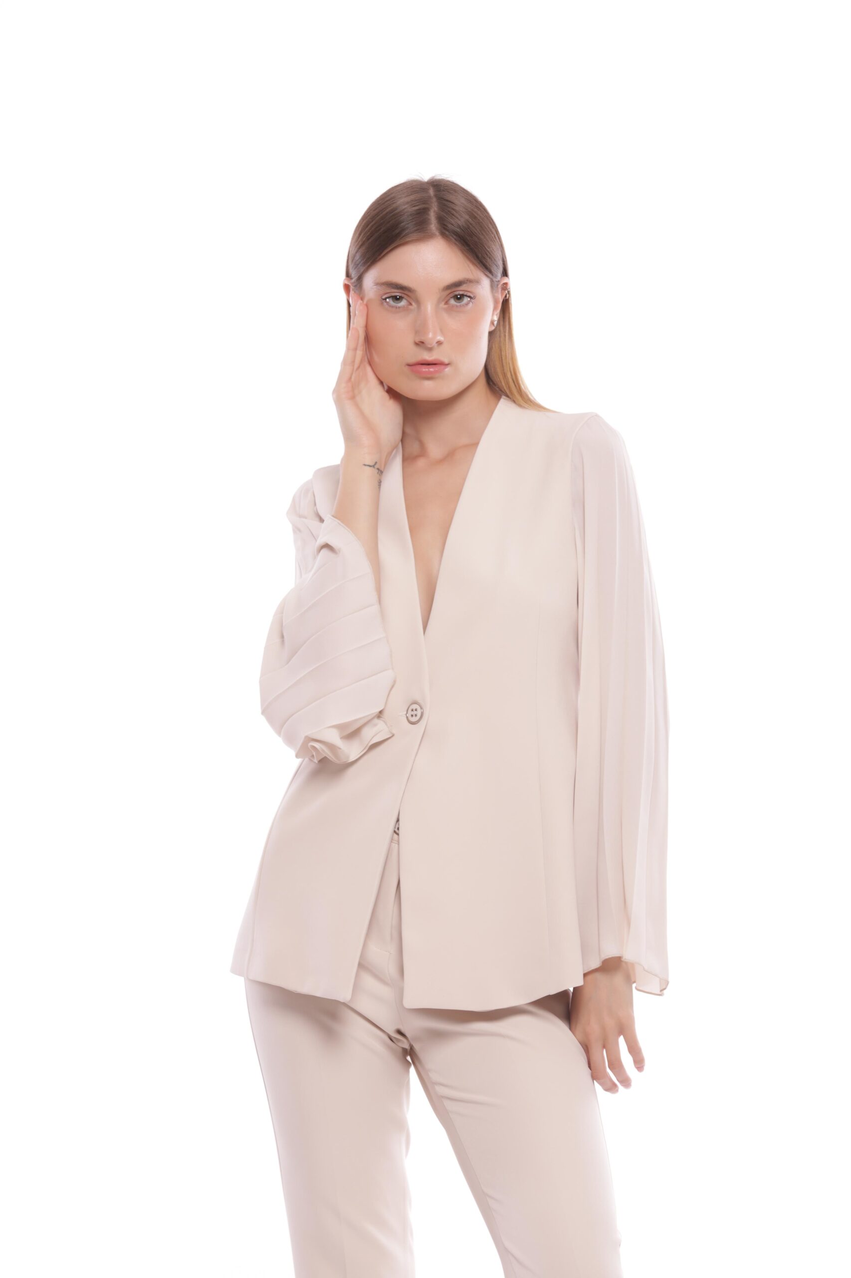 Giacca In Tessuto Tecnico Con Maniche Plisse’ Burro