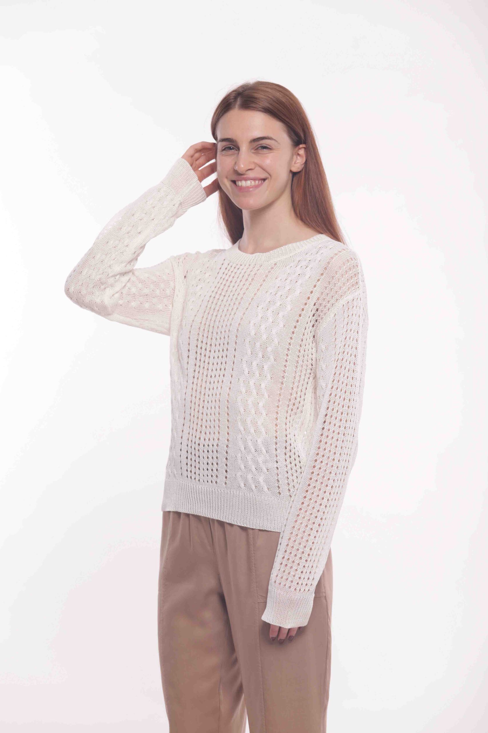 Home Abbigliamento Maglie Maglia Scollo Tondo In Crochet Bianco