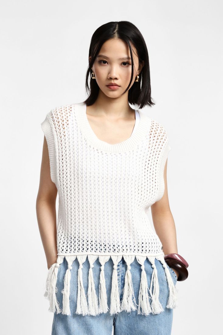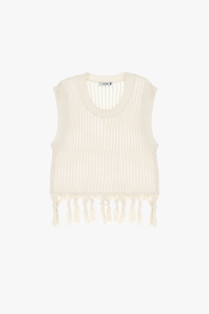 Maglione Senza Maniche Ecru