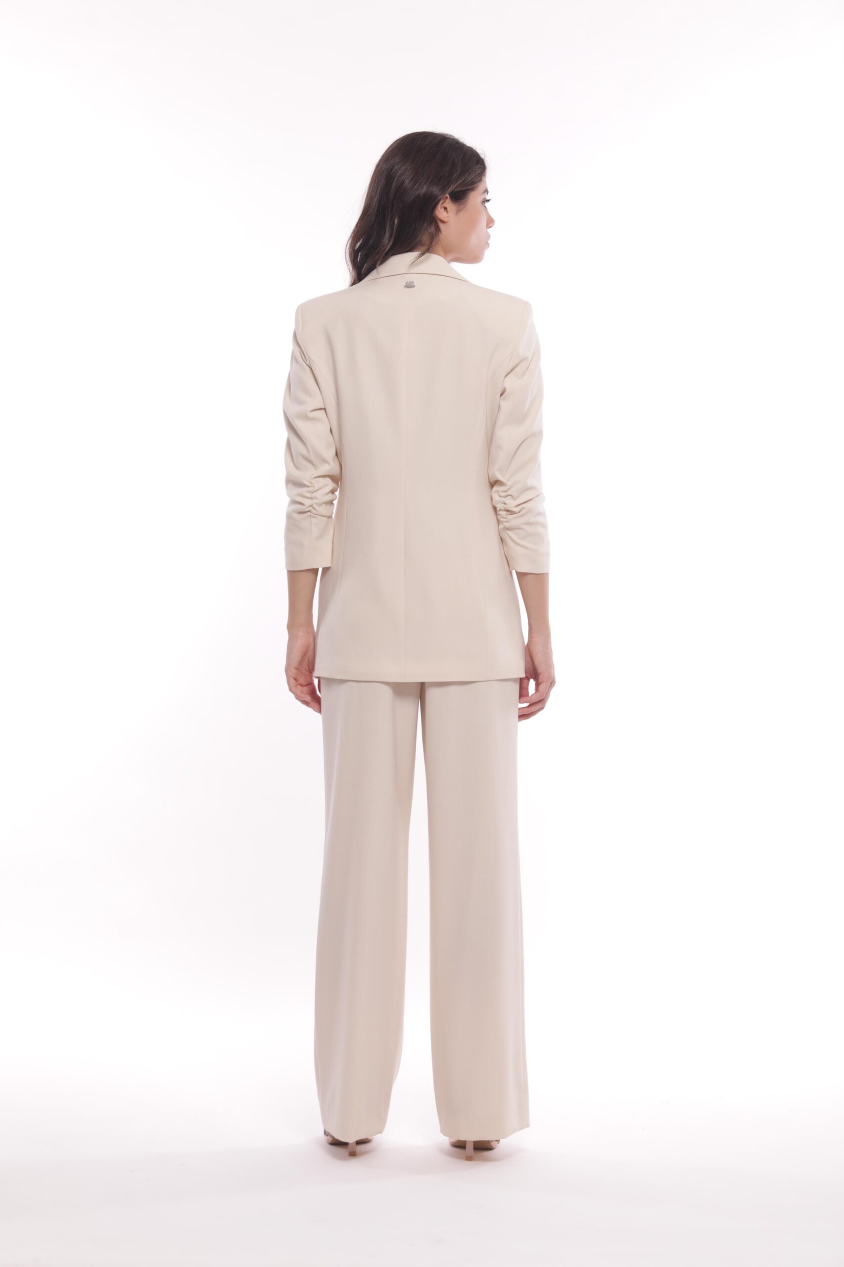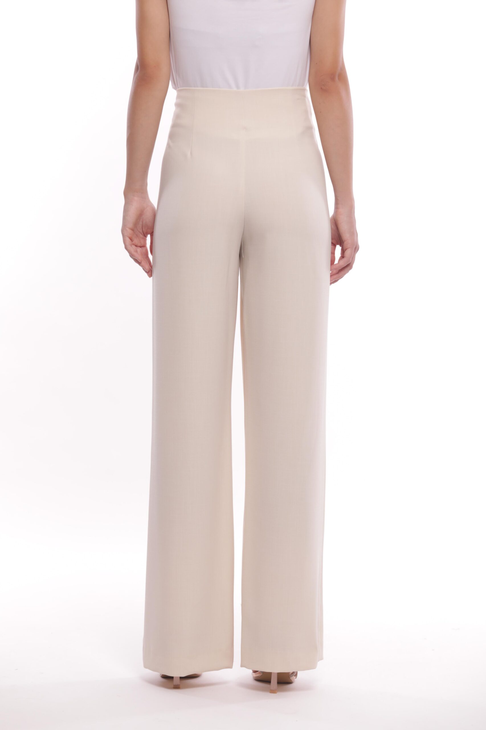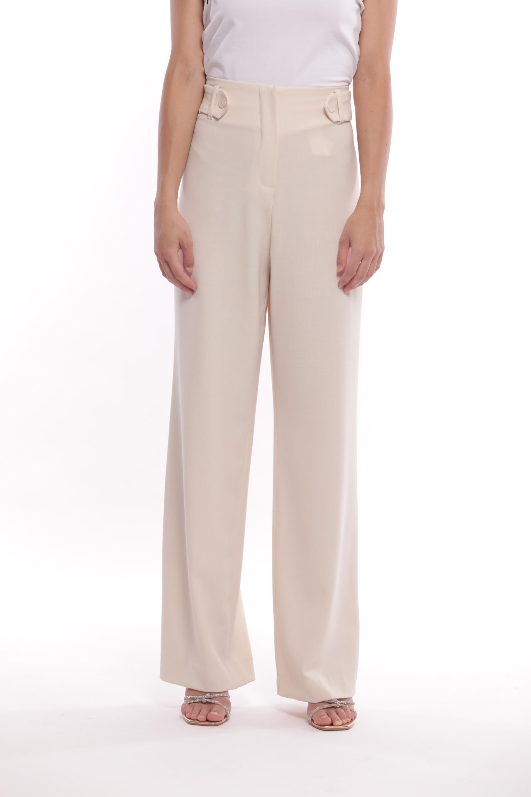 Panta Palazzo Con Fibbie In Tessuto Fiammato Burro
