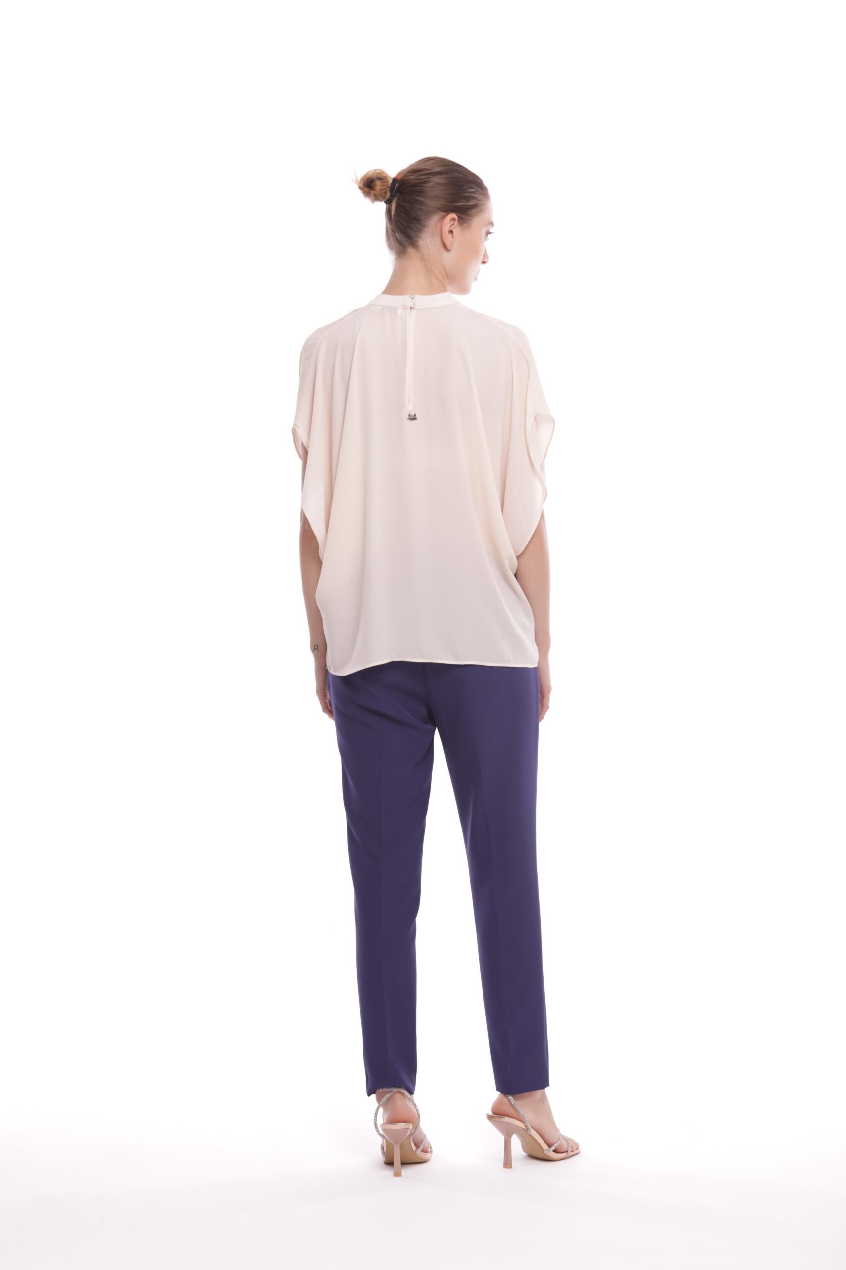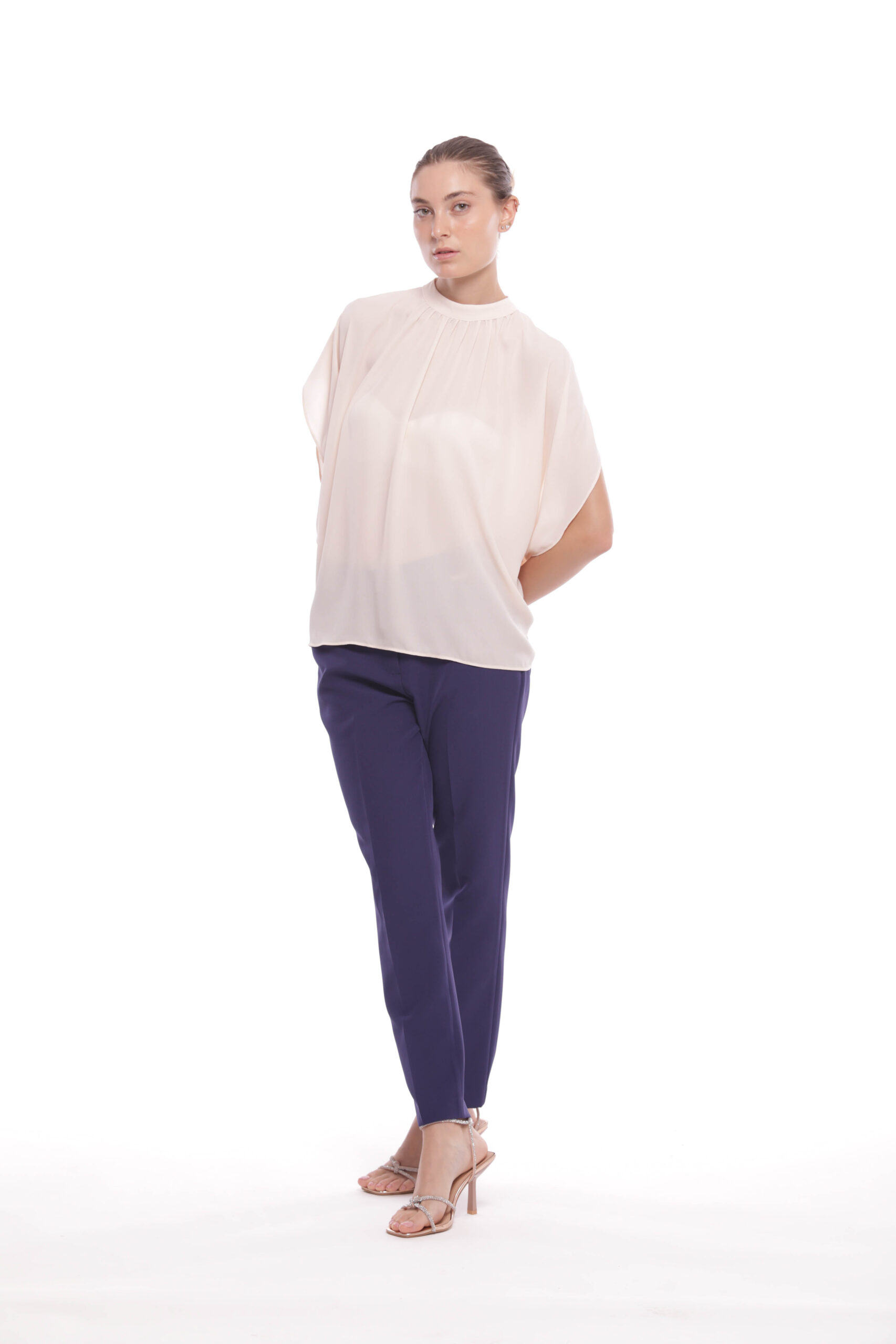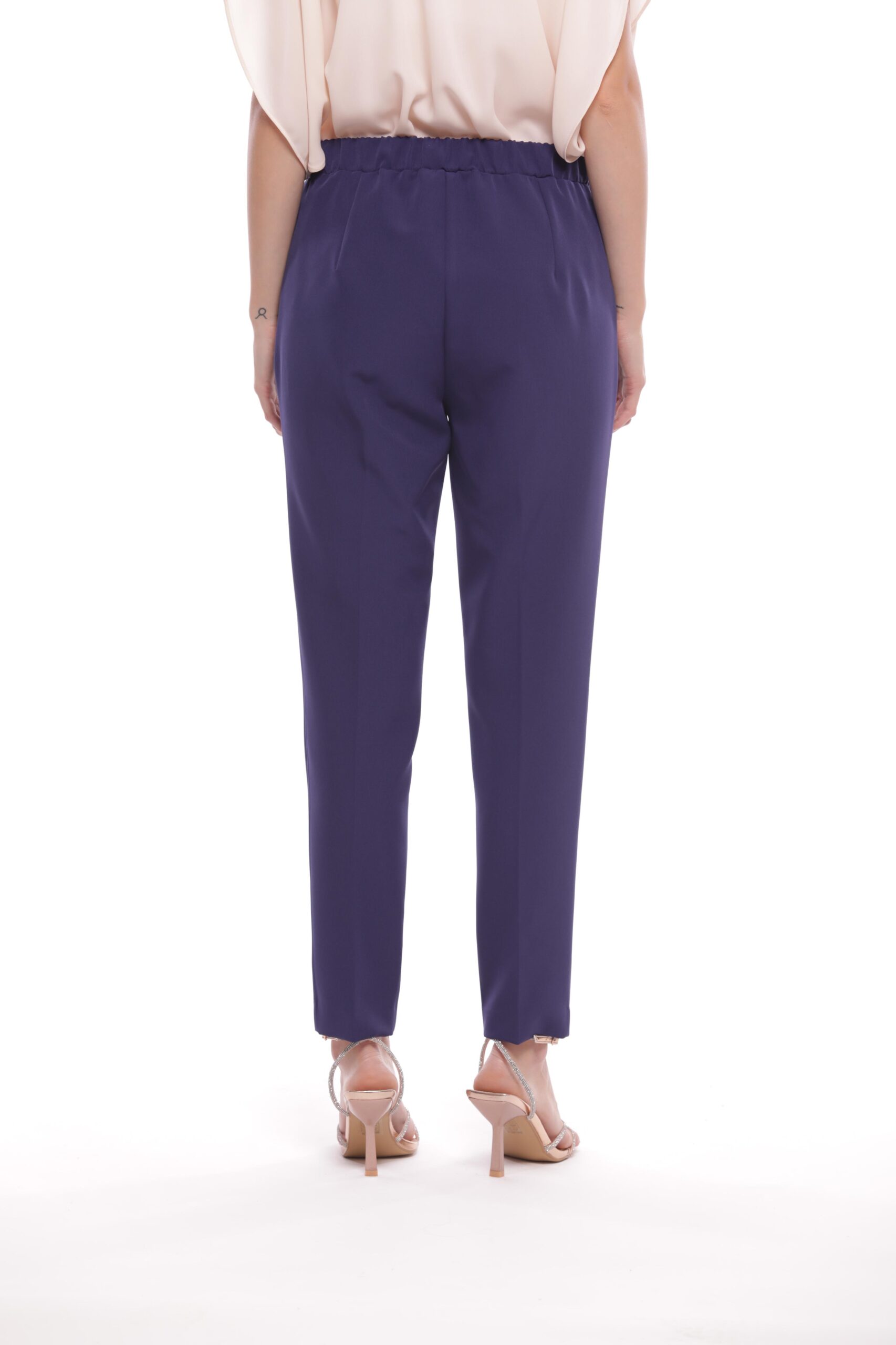 Pantalone Sigaretta Con Elastico Blu Inchiostro