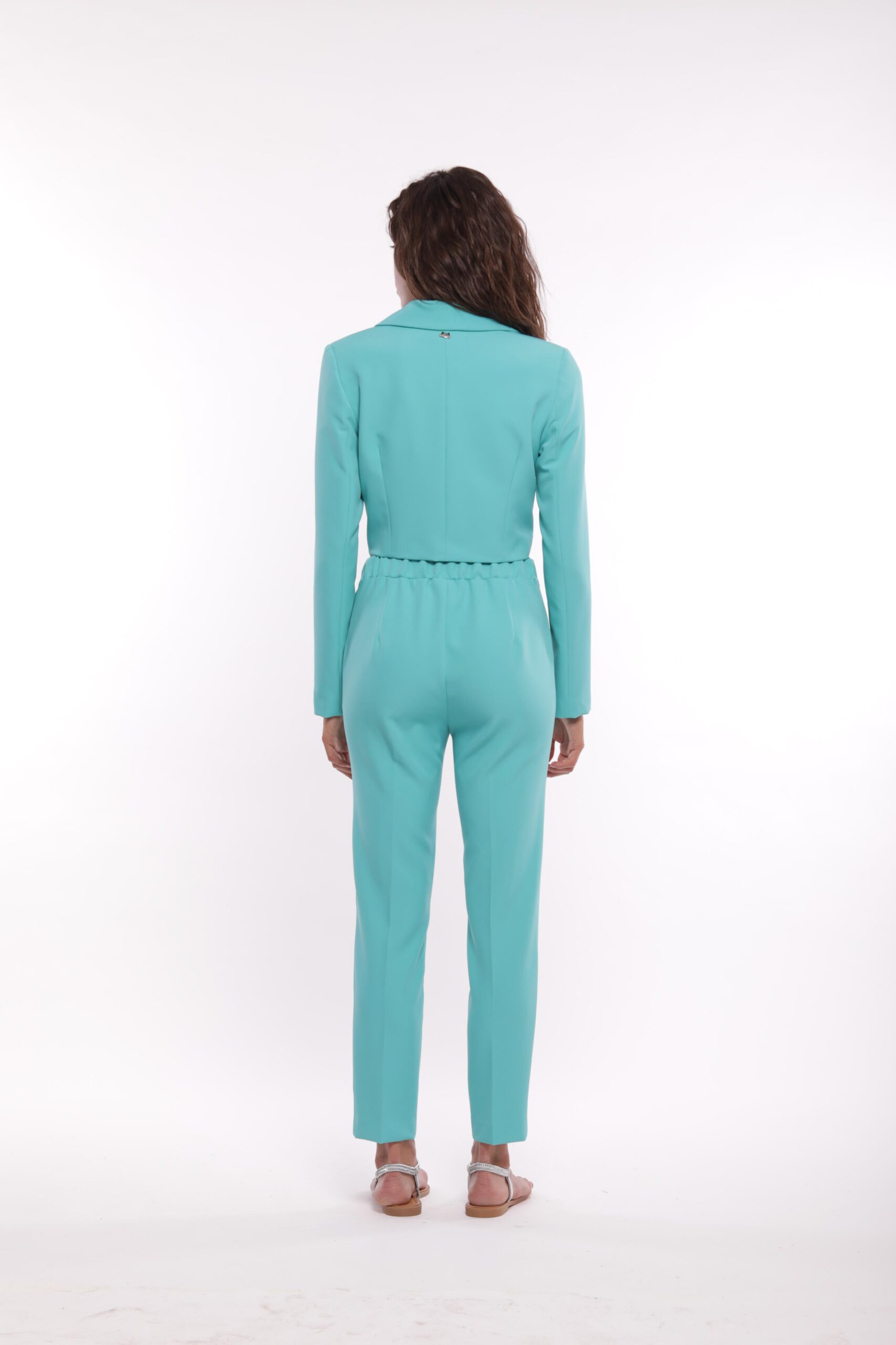 Pantalone Sigaretta Con Elastico Turchese
